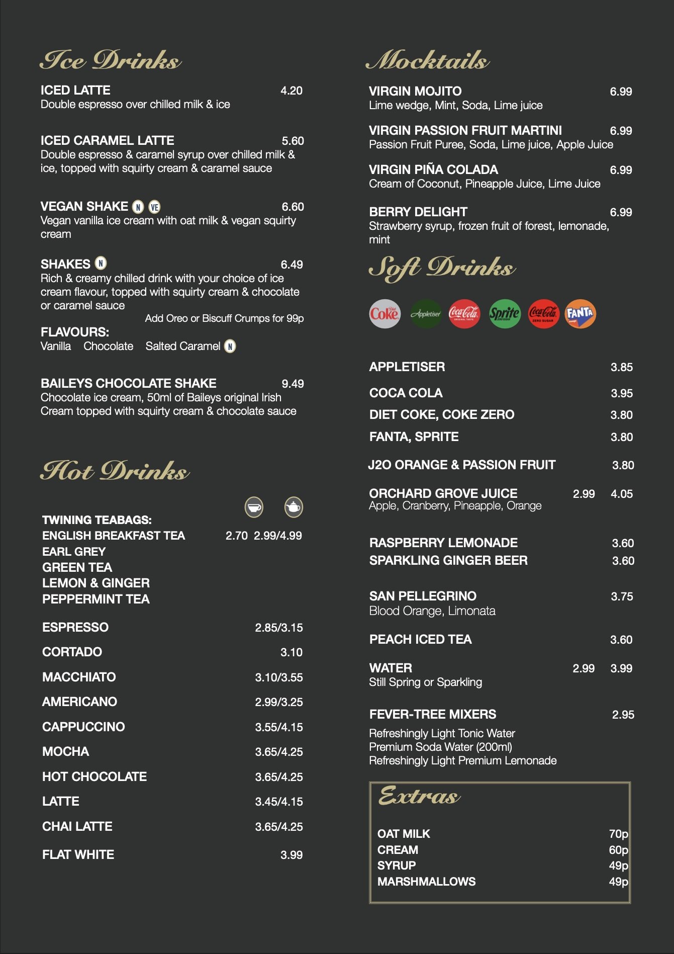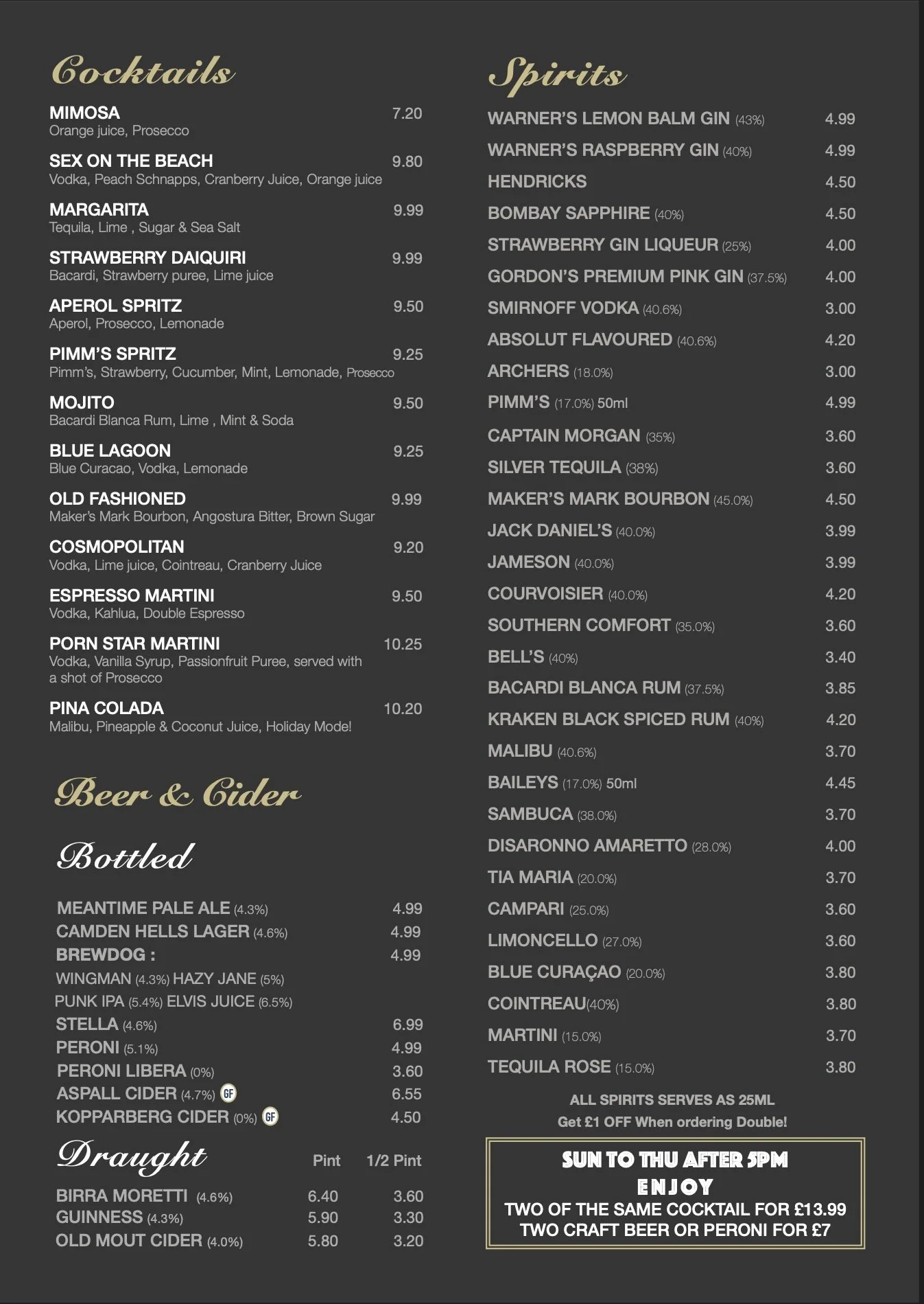 The ABV% on alcoholic drinks are correct at the time of printing this menu (they may be subject to change)